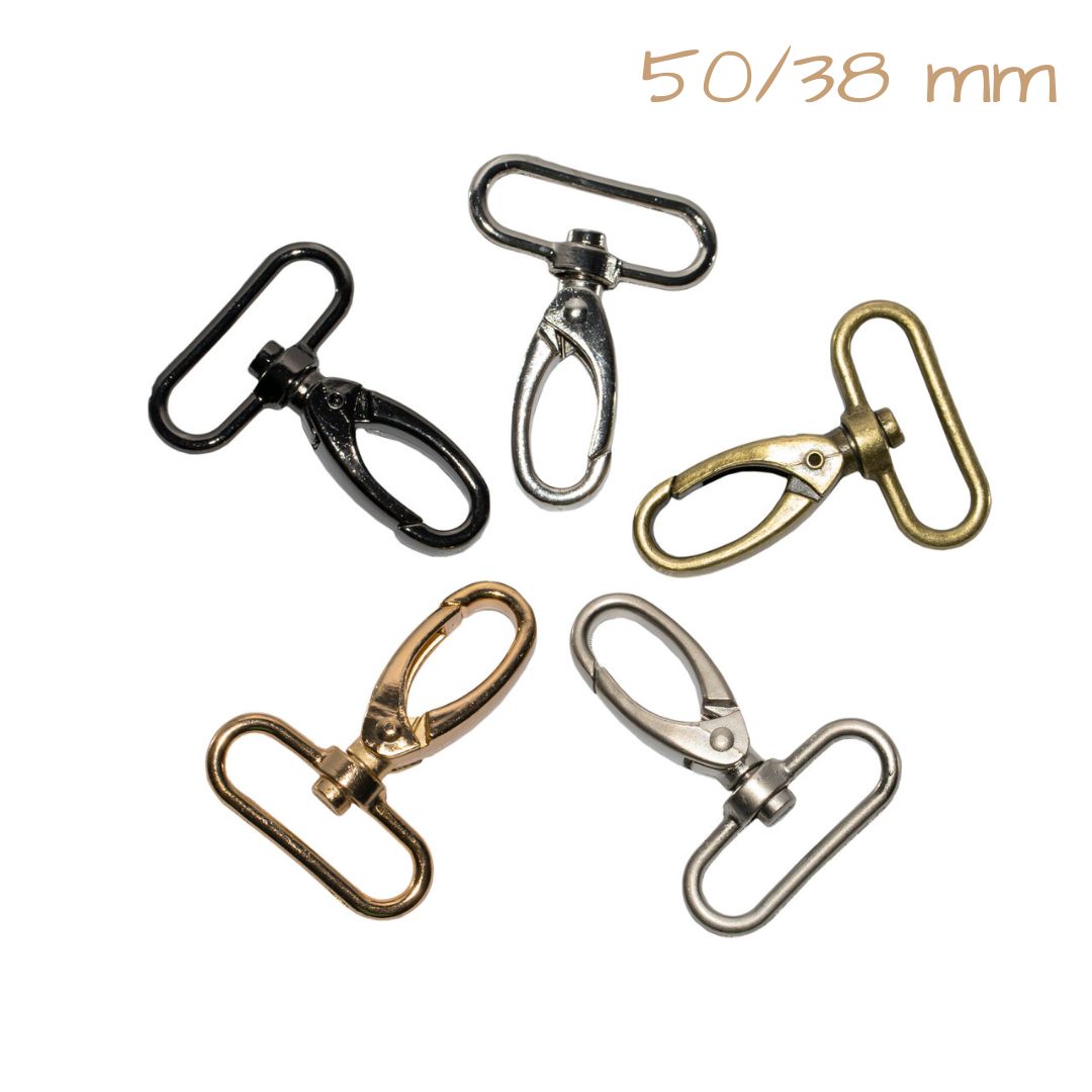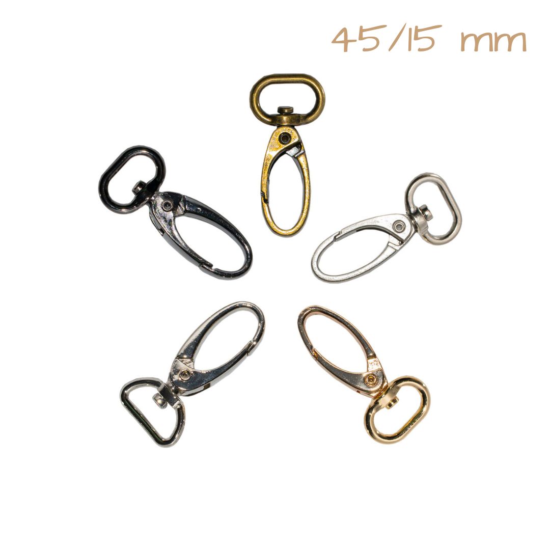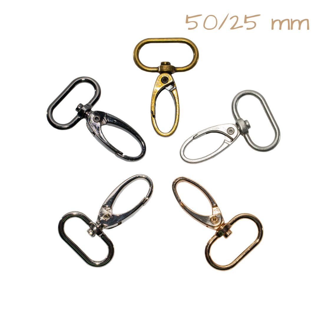Metalowa klamra mocująca – niezbędna przy tworzeniu makramowych breloków ze sznurka. Umożliwia także mocowanie pasków (np. do makramowej torebki) oraz innych akcesoriów.