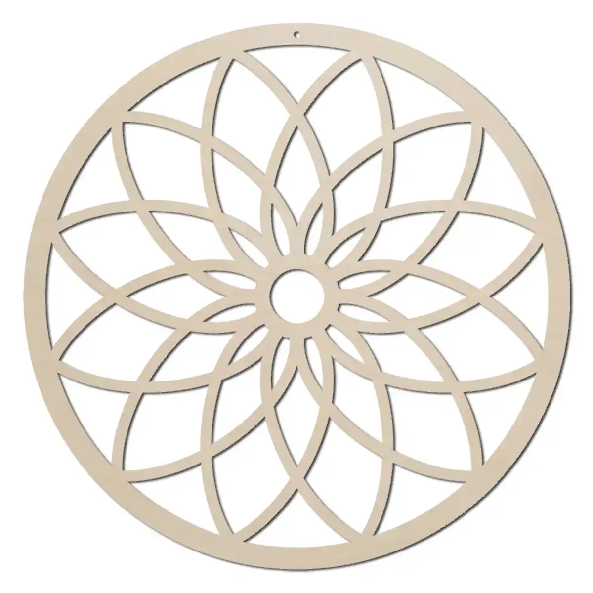 Drewniana obręcz z ażurowym wzorem, niezbędna do wykonania łapaczy snów, okrągłej makramy i podobnych dekoracji.