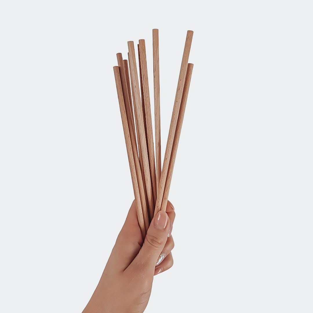 Drewniane patyczki – niezbędne przy tworzeniu małych, makramowych dekoracji ściennych ze sznurka. Patyczki są lekkie, wytrzymałe i gładkie. 1 pakiet patyczków zawiera 10 sztuk.
