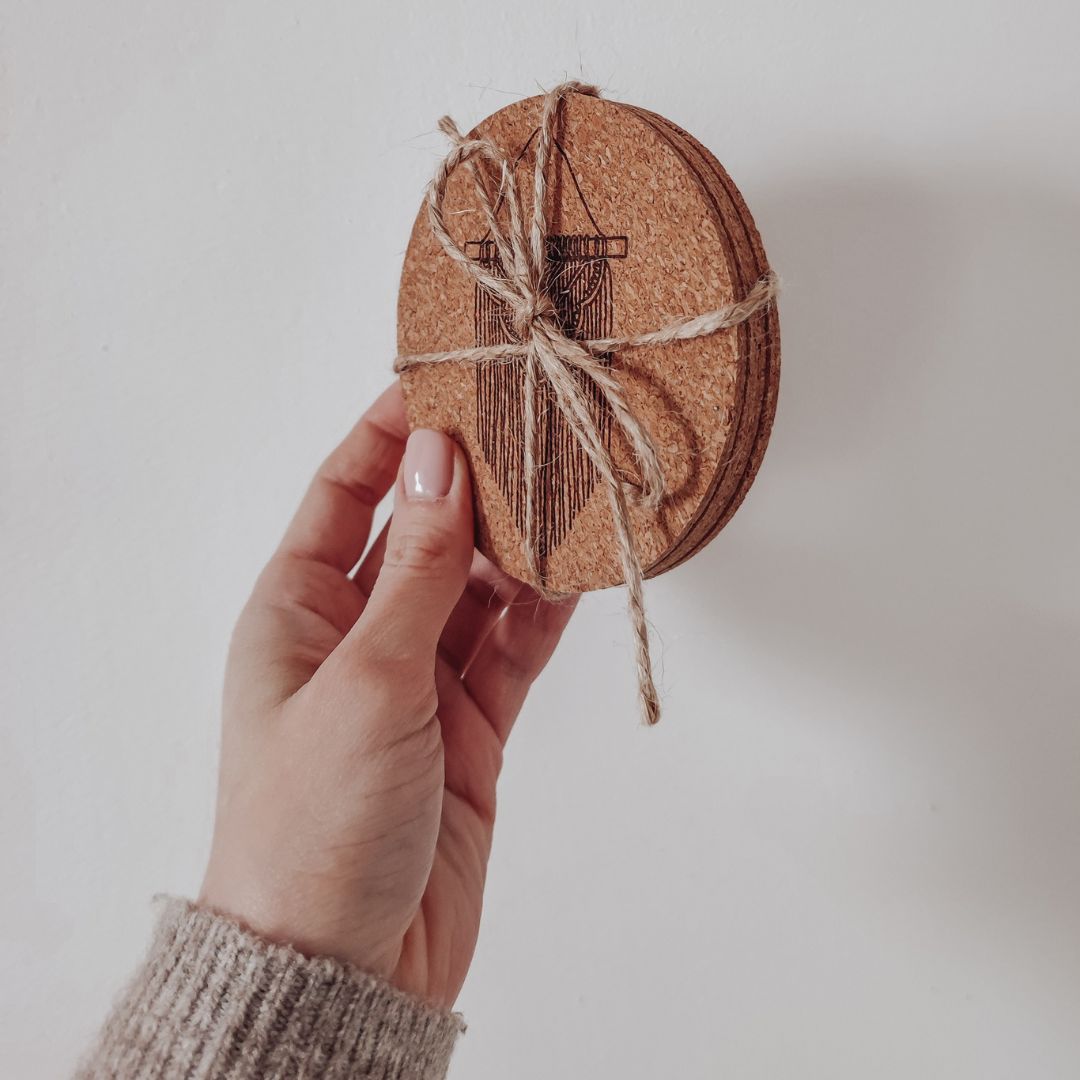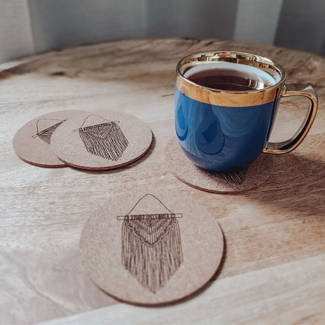 Podkładki pod kubek zostały wykonane z korka. Ochronią powierzchnię blatu i pozwolą uniknąć plam spowodowanych przez gorące napoje. Podkładki są praktyczne, ale również pięknie się prezentują na stole. To idealny gadżet dla rękodzielnika!