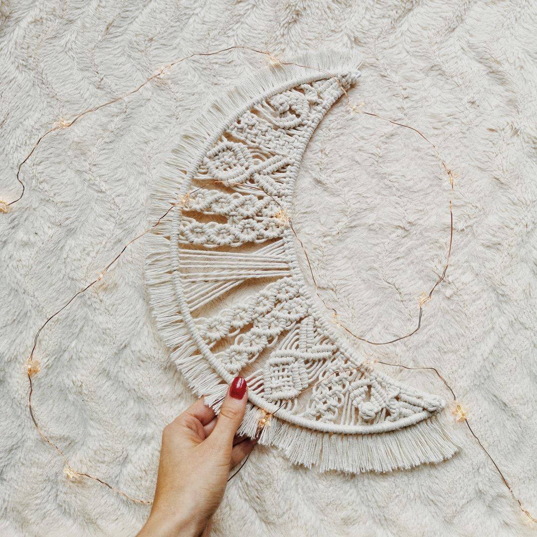 Stelaż metalowy do makramy w kolorze białym o wymiarze od 25 do 40 cm.
