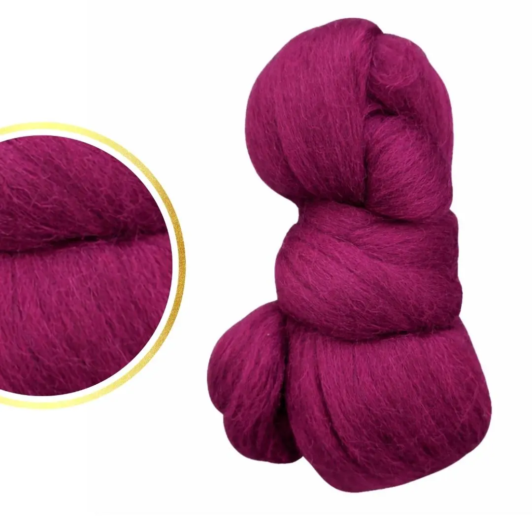 Wełna czesankowa jest miękka i barwiona. Idealna do tkania makramowych makatek, makram ściennych. Nadaje się także do wyrobu pledów oraz biżuterii.