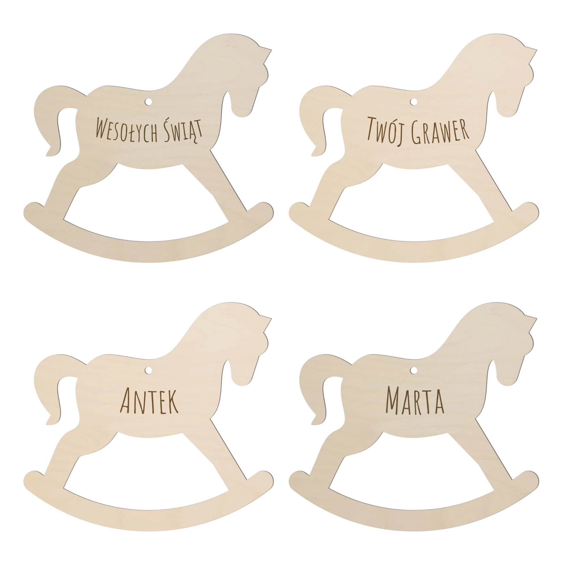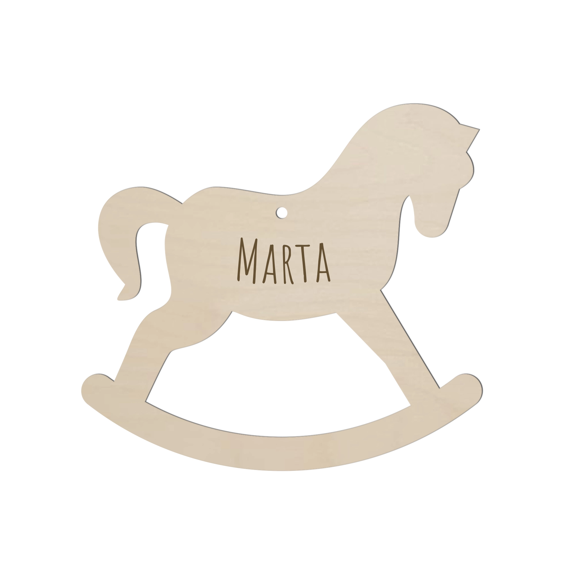 Urocza i precyzyjnie wykonana zawieszka w kształcie konika na biegunach, z trwałym grawerem — idealna baza do rękodzieła i dekoracji w stylu boho. Gotowa do malowania, zdobienia i łatwa w montażu.